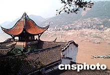 具有1700多年歷史的云陽張飛廟,伴隨三峽工程二期水位的逼近,2002年10月8日上午10點(diǎn)正式閉館。重慶云陽縣文管所和遷建單位以辦完交接手續(xù),并開始對張飛廟進(jìn)行拆遷,標(biāo)志著建國以來全國最大規(guī)模的文物搬遷工程正式啟動。圖為張飛廟結(jié)義樓全景。巨建兵 攝