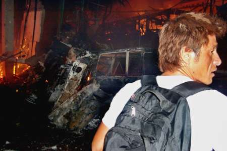 中新網10月13日電 印度尼西亞旅游勝地巴厘島12日晚發生多次炸彈爆炸事件,至少已造成150人死亡。圖為一名外國游客走過爆炸現場。(春風)