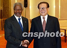 這是安南第五次訪華,他在會見中感謝中國對聯合國工作的支持。