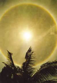 中新網(wǎng)10月15日電  據(jù)《人民日?qǐng)?bào).華南新聞》報(bào)道,昨日11時(shí)20分左右,海南三亞駐軍某部營院上空出現(xiàn)了一個(gè)美麗壯觀的天文現(xiàn)象:太陽周圍產(chǎn)生的強(qiáng)烈光暈,形成了巨大而又明顯的圓,并持續(xù)了近一個(gè)小時(shí),而且光暈使天空逐漸變暗,太陽周圍也不斷出現(xiàn)黃綠等顏色的交錯(cuò)變化,讓該部上千名官兵大飽了眼福。