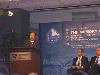江澤民主席訪美前夕,中國國務院新聞辦在美國首都華盛頓的威爾遜中心舉辦“歷史的記憶”展覽,紀念中美兩國在“二戰”中的合作。國務院新聞辦主任趙啟正在今天的新聞發布會上說,重溫歷史是為了增進中美友好。