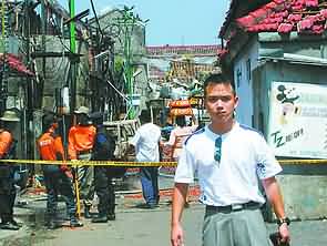 王文輝去年和妻子剛結婚5天,就奉命去東帝汶維和,一年來,他做夢都想著早日和妻子團聚。事發當天,王文輝正坐在床邊,突然發現窗外閃過一道火光,隨即聽到一聲巨響,像是煤氣的爆炸聲。“不好了,出事了!”王文輝沖到窗前,想看外面到底發生了什么事。