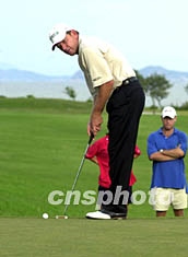 “2002澳門高爾夫球公開賽”二十日落下帷幕,本屆奪標熱門球星普萊斯獲得亞軍。圖為普萊斯在比賽中。李剛 攝