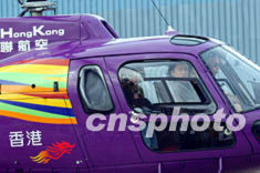 香港演藝界“大哥”成龍,10月21日身著唐裝乘坐直升機出席在啟德舊機場舉行的《千機變》電影記者會,為英皇集團投資的科幻電影造勢。洪少葵 攝