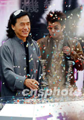 香港明星成龍與眾多明星,10月21日旋風出席英皇集團投資的新片《千機變》開鏡儀式。洪少葵 攝