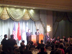 當地時間二十二日晚,江澤民和夫人王冶坪出席了瑞恩州長、芝加哥市政府和外交關系委員會舉行的盛大歡迎晚宴。伊州、芝市各界知名人士四百多人出席了宴會。圖為江澤民在晚宴上致辭。中新社記者 呂振亞 攝