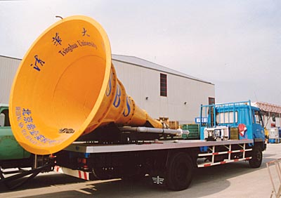 它是高技術(shù)的產(chǎn)品--氣動(dòng)喇叭。中國(guó)的這種氣動(dòng)喇叭是世界水平最高的。它能讓12公里外的聽(tīng)眾清楚地聽(tīng)到廣播,它巨大的功率使它播音時(shí)根本沒(méi)有人敢站在喇叭前。它是作為世界唯一的機(jī)場(chǎng)消霧喇叭的身份來(lái)參加航展的。據(jù)介紹它只要吼叫起來(lái),甚至機(jī)場(chǎng)跑道上的霧都會(huì)消散。