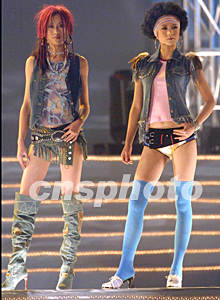 3日在廣東增城市新塘鎮(zhèn)舉行的2002年中國廣州(新塘)國際牛仔服裝節(jié)上,俄羅斯模特展示中國生產(chǎn)的性感個性牛仔服裝。作者:趙振清
