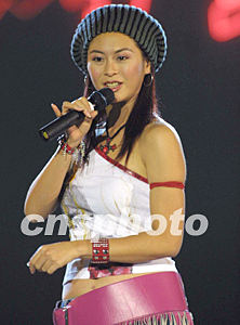 2000年亞洲小姐李華作為2002年廣東新塘牛仔服裝節(jié)形象代言人,在牛仔服裝節(jié)晚會上表演。作者:趙振清