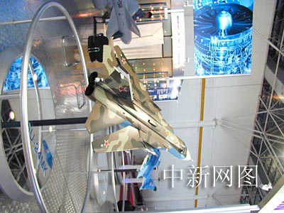 俄羅斯展臺(tái)的超音速戰(zhàn)斗轟炸機(jī)模型。