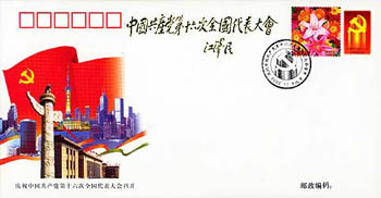 中新網(wǎng)11月5日電 為慶祝中國共產(chǎn)黨第十六次全國代表大會的召開,中國國家郵政局將于11月8日發(fā)行郵票《黃河壺口瀑布》和《鮮花》各一枚,中國集郵總公司當(dāng)日還將發(fā)行紀念封一枚。中共中央總書記江澤民為紀念封題字:“中國共產(chǎn)黨第十六次全國代表大會”。