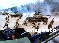北京軍區某師合成作戰戰車隆隆譜新篇:金秋時節,塞外高原某合同戰術訓練基地,北京軍區某機械化師官兵以喜迎十六大的昂揚熱情,駕馭多種新型裝備,與“藍軍”斗智斗勇,雙方各出奇招,激戰猶酣。