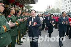 出席中共十六大的中央企業系統代表六日抵達駐地,受到武警戰士和工作人員的熱烈歡迎。