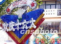 中共十六大即將召開,申城街頭到處洋溢著喜氣。作者:湯彥俊