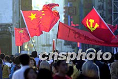 中共“十六大”即將在北京開幕,廣州大街小巷處處洋溢節日氣氛,街頭國旗、黨旗處處飄揚,喜迎“十六大”召開。作者:陳文