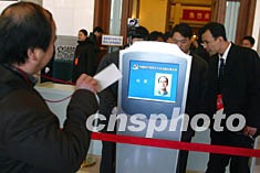 即將舉行中國共產黨第十六次全國代表大會的北京人民大會堂啟用電子證件管理系統,通過者的資料一目了然。作者:毛建軍