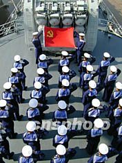 解放軍東海艦隊官兵在中共十六大召開之際列隊宣誓,堅決履行好守護祖國海疆的神圣使命。作者:鐘魁潤