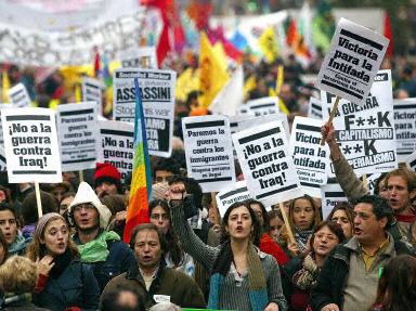 參加周日示威游行的男女老幼舉著形形色色、用各種語言寫成的標語牌,高呼反戰(zhàn)口號,并高唱20世紀70年代的和平歌曲在佛羅倫薩大街上游行。到黃昏時分,游行人數(shù)超過了50萬,其中許多人是包租火車或汽車趕到的。