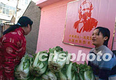 北京鬧市一角的胡同里今秋高懸共產黨導師馬克思的紅色畫像。作者:賈國榮