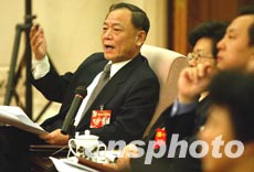 十六大代表、首都鋼鐵集團董事長羅冰生在中共十六大北京代表團分組會上暢言國企改革。作者:毛建軍
