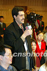 卡塔爾半島電視臺(tái)記者在新聞發(fā)布會(huì)上提問(wèn) 毛建軍 攝