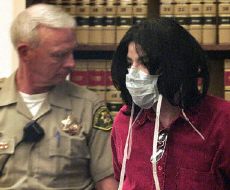 流行樂壇之王邁克爾·杰克遜以被告方證人的身份出現在加利福尼亞州一家法庭上,因他的一名前經紀人以違約罪名向他索賠2100萬美元并提出訴訟。身穿紅襯衫、面帶白口罩的邁克爾·杰克遜當天中午乘坐豪華加長轎車來到加州圣巴巴拉縣高等法院。等候在此的數十名歌迷看到杰克遜亮相之后都情不自禁地尖叫不止。