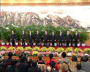 上午十一點(diǎn)半,中共中央總書(shū)記胡錦濤在人民大會(huì)堂向中外記者一一介紹了各位常委。隨后,胡錦濤發(fā)表了講話。