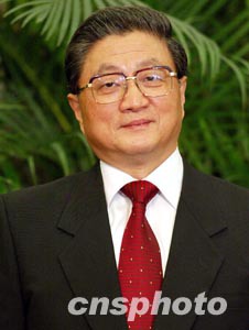 中國共產黨十六屆一中全會十五日上午在北京人民大會堂舉行,胡錦濤、吳邦國、溫家寶、賈慶林、曾慶紅、黃菊、吳官正、李長春、羅干等九人當選為新一屆中共中央政治局常委。圖為新當選的常委黃菊。作者:毛建軍