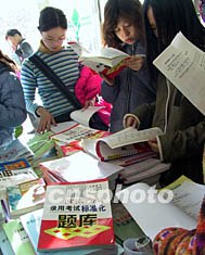 北京眾多青年人在書店選購有關公務員知識的書籍,準備參加十二月進行的國家公務員考試。在競爭激烈的現(xiàn)代中國,擁有穩(wěn)定收入的公務員職位越來越受到年青人的青睞。作者:王麗南