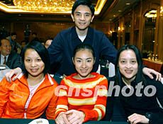 中國第五屆城市運動會將于2003年10月在湖南省會長沙市舉行,四位湖南省藉的奧運會冠軍熊倪、楊霞(左一)、劉璇、龔智超,11月18日到香港為本次運動會宣傳。任晨鳴 攝