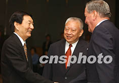 在香港出席世界會計師大會的中國國務院總理朱镕基,11月19日專門會見香港特首董建華的十多名特設國際顧問。任晨鳴 攝