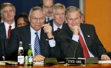 美國總統(tǒng)布什和美國國務(wù)卿鮑威爾在北約首腦會議上