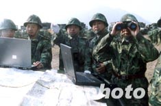圖:解放軍通信兵在北方山區(qū)演習(xí)野戰(zhàn)通信
