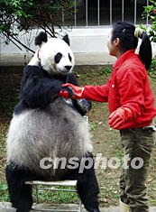 中國東南地區唯一的大熊貓研究機構——福州大熊貓研究中心成立十年來,與省內外科研機構合作開展大熊貓科研,取得十項有重要價值的科研成果。圖為福州大熊貓研究中心的大熊貓青青,她今年26歲,相當人類九十五高齡,是全世界最高壽的大熊貓。 作者:華小銳