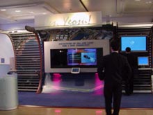 在中國(guó)的展臺(tái),外層設(shè)有照相機(jī)鏡框形狀的白色門(mén)框,蘊(yùn)涵“聚焦”之意。在門(mén)框上,還做成了一個(gè)激光豎琴,手指撥動(dòng)激光束便能聽(tīng)到動(dòng)聽(tīng)的旋律。今天一位中國(guó)姑娘將在這里演奏中國(guó)申博宣傳片的主題曲———《好一朵美麗的茉莉花》。