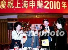 據(jù)說“慶功宴”其實早在上周六就已經(jīng)定下,當時正是上海“申博”的關鍵階段,紐約僑團發(fā)起簽名活動表示支持,數(shù)千華僑華人簽下自己的名字,共簽滿了二十條彩綢。為了表示對上海成功充滿信心,紐約中國和平統(tǒng)一促進會、美國上海聯(lián)誼會、美國上海總商會和溫州工商聯(lián)合總會等僑團當天就聯(lián)合發(fā)起籌辦“慶功宴”,預定下酒席。