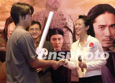 相關報道:黃葉飛紅衣舞 張曼玉章子怡《英雄》對打(圖) (2002-11-27 11:16:13)