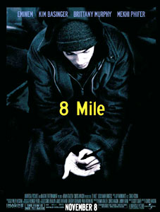 與一般音樂片不同的是,這部由前《洛城機密》導演柯蒂斯.漢森執導的影片不是一部被拉長了的MTV,而是一部嚴肅的歌手傳記。故事發生在1995年的美國“汽車城”底特律,“8英里”就是該城一條主干道的名稱,這條街把底特律分成了黑白兩個世界。艾米納姆在電影里扮演了一個名叫吉米的白人說唱樂手。影片一開始,吉米準備上臺參加一個說唱歌手比賽,卻緊張地在后臺廁所里大吐特吐。當鏡頭終于隨著吉米來到舞臺上時,觀眾們立刻就會明白吉米為什么那么緊張了:臺下黑壓壓一片全是黑人!和吉米叫板的也是一個老黑,他一開口就咄咄逼人:“你是白人這沒什么,可你一拿起話筒就是個傻×了!”一句話就點明了主題:說唱樂一直都是美國城市黑人的民間音樂,你一個白人瞎起什么哄?