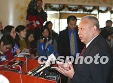 董建華在下榻的北京港澳中心向記者介紹述職行程。