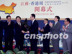 由香港特別行政區(qū)政府和江蘇省人民政府?dāng)y手舉辦的“江蘇·香港周”9日上午在南京國際展覽中心隆重開幕,香港展覽會亦同期拉開帷幕。香港工商及科技局局長唐英年與江蘇省副省長梁寶華共同為開幕式剪彩。作者:丁東升