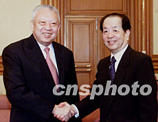 國務院副總理錢其琛十日在北京會見前來述職的香港特別行政區(qū)行政長官董建華。作者:鄭萍萍