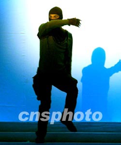 一名男模特像蜘蛛俠似的登上北京冬天的T型舞臺,為明年的時裝流行趨勢蒙上反恐戰爭的陰影。作者:賈國榮