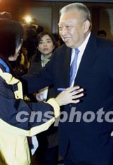 香港特別行政區(qū)行政長官董建華十一日在北京港澳中心就有關(guān)連任后第一次來京述職的感受回答香港記者提問。作者:鄭萍萍