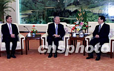 中新社北京十二月十一日電(記者 黃少華)國家副主席胡錦濤今天下午在人民大會堂福建廳會見了香港特別行政區(qū)行政長官董建華和澳門特別行政區(qū)行政長官何厚鏵。