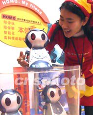 在十二日開幕的北京時(shí)尚生活展覽會(huì)上,一款可聊天、唱歌、行走的機(jī)器人大受歡迎。這款智能機(jī)器人內(nèi)置老人、青年、兒童三種情景模式,上市一周就成為時(shí)髦一族的新新寵物。作者:廖文靜