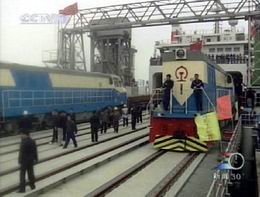 據(jù)介紹,重載列車上船和下船是此次聯(lián)合調(diào)試的關(guān)鍵環(huán)節(jié),為了確保聯(lián)調(diào)成功,聯(lián)調(diào)指揮部組織專家組對列車駛上南港碼頭的方案進(jìn)行了細(xì)化,并對個(gè)別技術(shù)細(xì)節(jié)作了調(diào)整。今天上午十點(diǎn)零五分,這兩列通過瓊州海峽這段移動(dòng)鐵路到達(dá)海口的列車終于安全駛上了南港碼頭的鐵路棧橋。