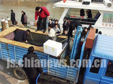 昨天記者在白鱘出水現(xiàn)場(chǎng)曾巧遇中華鱘東方養(yǎng)殖研究基地主任劉忠,從劉主任的口中獲知,該基地是投資數(shù)千萬(wàn)元,專為野生養(yǎng)殖中華鱘而修建的,其軟硬件設(shè)施均為一流。將白鱘運(yùn)往中華鱘東方養(yǎng)殖研究基地進(jìn)行護(hù)養(yǎng)是劉忠專程趕到南京的目的,F(xiàn)在,如愿已償。