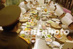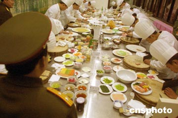 解放軍總參謀部十七日在北京舉行烹飪技術比賽,以促進部隊生活水平的提高。解放軍部隊的伙食正在向著科學型、營養型轉變。作者:宋吉河