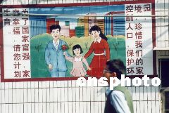 2002年12月16日,國家計劃生育委員會提供的消息:國家計劃生育委員會在泰國曼谷召開的第五屆亞太人口會議上發(fā)表的國家報告提出:到2010年末,中國人口總數(shù)(不含香港、澳門特別行政區(qū)和臺灣省)將控制在十四億以內(nèi)。圖為在很多地方的街頭小巷隨處可見計劃生育的宣傳標(biāo)語。桂鴻 攝