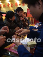 相關報道:賀歲金條開賣 京城消費者新年開做“黃金夢” (2002-12-18 07:56:50)